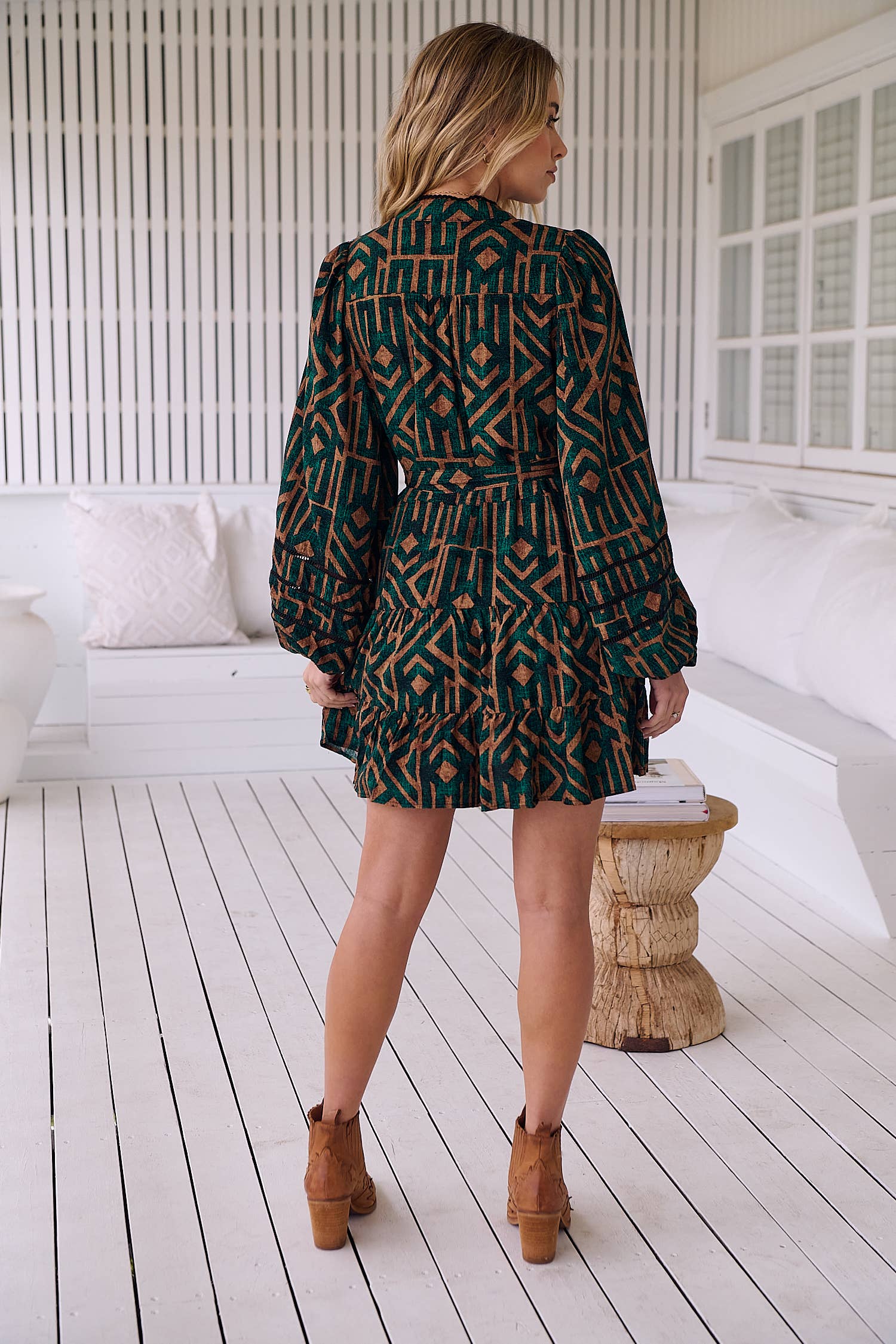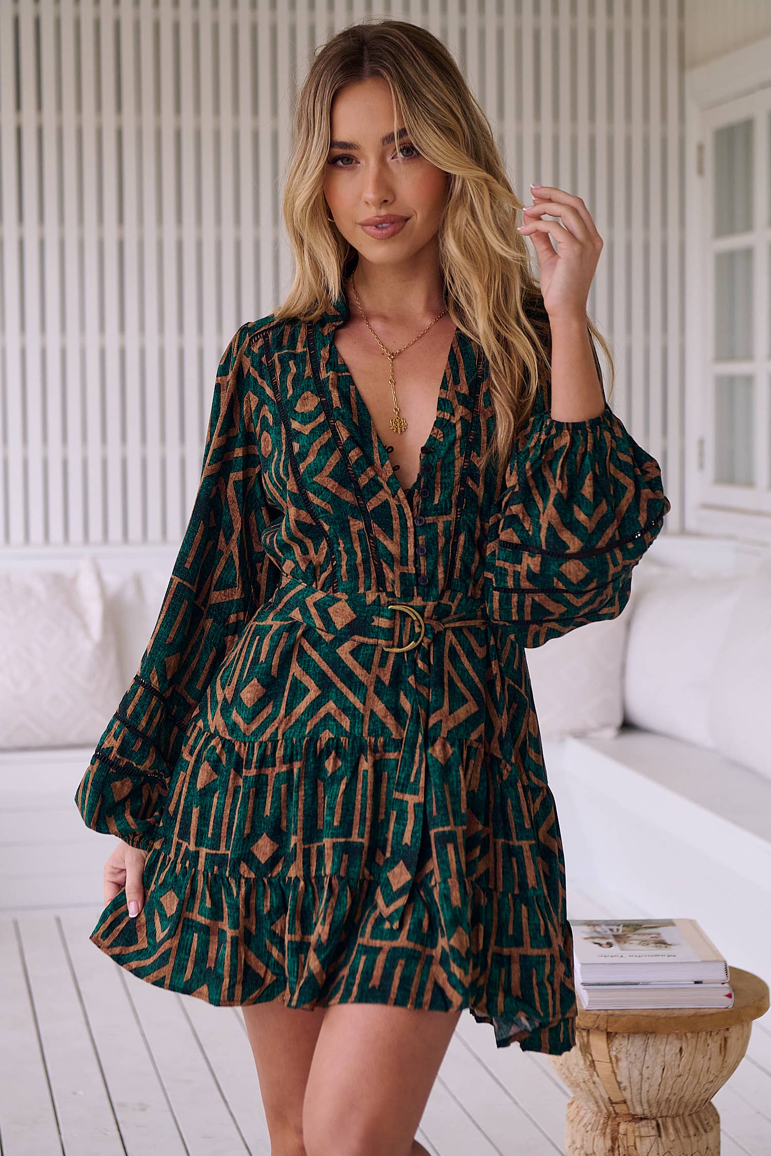 „Jade“ ist das Kleid, das dich durch alle Saisons begleitet – verspielt, elegant und mit einem Touch Boho-Vibes. Das smaragdgrüne Muster mit goldenen Akzenten sorgt für einen edlen Look, während der fließende Schnitt deine Silhouette perfekt in Szene setzt. Ein echtes Highlight für Dinner-Dates, Herbstfeste oder den nächsten Citytrip.