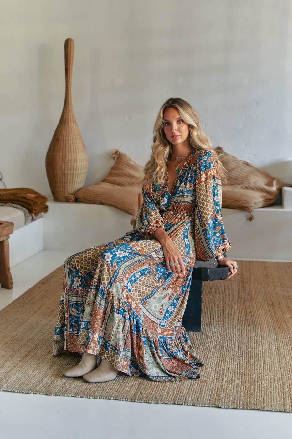 Maxikleid „Isola“ – Boho Soul in sanften Erdtönen